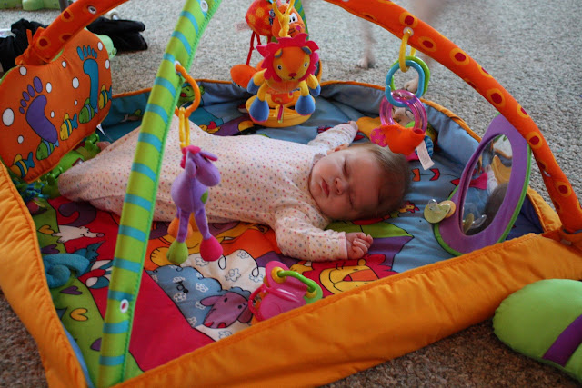 During the last week or so we have noticed that when eat Maddie starts to move her mouth like she is eating. So at her 4month apt I asked if it was okay to start her on cereal and we got the green light. I have started her on rice cereal and she has sucked it down since the first spoon full.